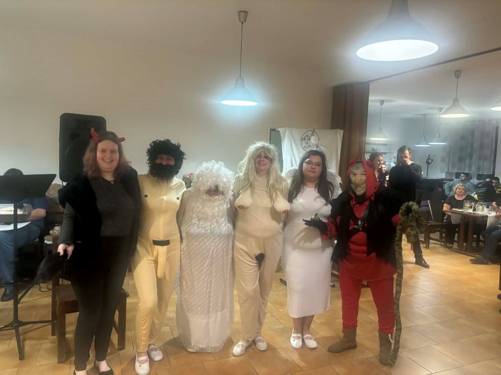 Jako první přišli postrašit po zuby ozbrojení loupežníci, potom přijeli zkouření hippies přímo z festivalu, Křemílek s Vochomůrkou přemýšleli, jak to udělat, aby nezůstali bez potomků, žabky přiskákaly z rybníka i s vodníkem a finále završila scénka o stvoření světa s Adamem a Evou. O kultivované průvodní slovo se postarala Helena Vykydalová, která během večera připomněla i historii Vjechétku.
